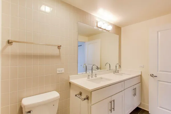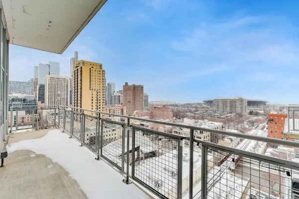 Stunning corner residence with expansive northeast views of Lake Michigan, Soldier Field, and the city skyline. Soaring 13-foot ceilings and floor-to-ceiling windows fill the home with natural light, while a large east-facing balcony offers the perfect space to relax and take in the views. A contemporary kitchen features a quartz waterfall island, subway tile backsplash, and stainless steel appliances. Wide-plank flooring runs throughout and bedroom walls have upper glass panels for privacy.The primary suite includes an en suite bathroom and generous closet space. A built-in nook in the main hallway offers the ideal spot for a home office or work station. The Guild is a full-service building with 24-hour door staff, on-site management, and maintenance. Common amenities include a third-floor outdoor deck with shared seating and grills and a fitness center. Ideally situated near the dog park, the lake front, Soldier Field, and Mariano's, with easy access to everything the South Loop has to offer.